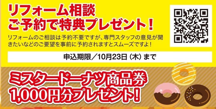 ミスタードーナッツ商品券1,000円分プレゼント! リフォーム相談会ご予約はコチラ